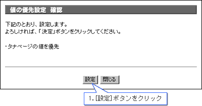 値の優先設定から、「タナページ」、もしくは「商品管理」のどちらかを選択して、[設定]ボタンをクリックします。
